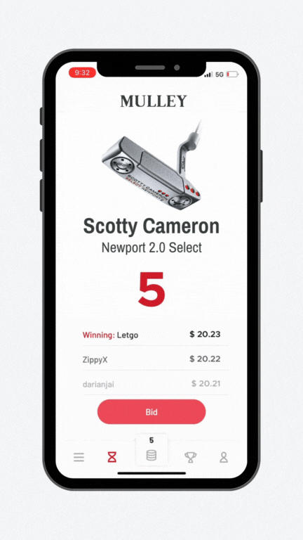 Players spend bids to earn a chance to win gear at a big discount